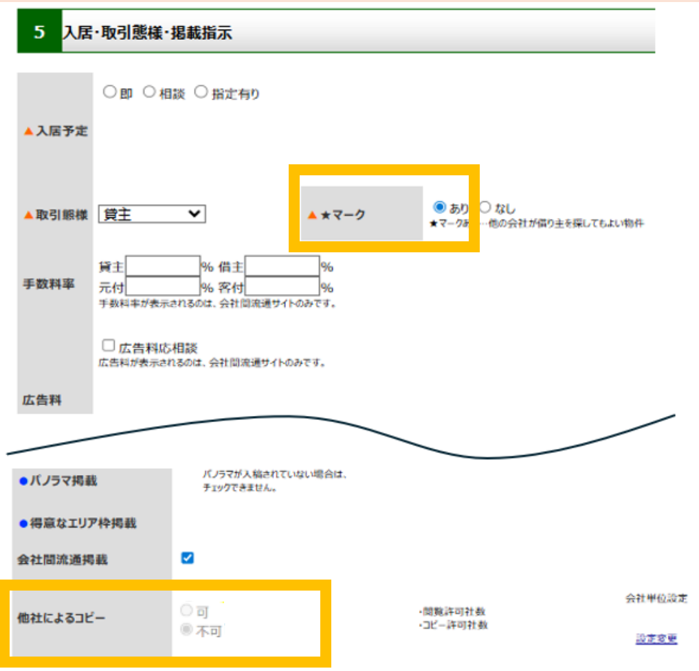 Q.会社間掲載の 「★マークあり」を選択したのに、「他社によるコピー」の可・不可ボタンが押下できない