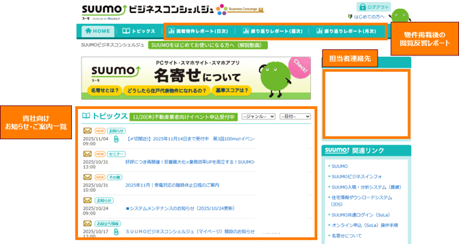 実際に掲載いただいた物件がどの程度閲覧されているのか、反響が入っているのかを確認いただくにはSUUMOビジネスコンシェルジュをご活用ください!