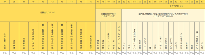 ■名寄せスコア■ 住戸名寄せ点数、代表候補、所属基準値、競合物件数、各基準値の競合物件数、競合物件中最高得点、最高得点差分