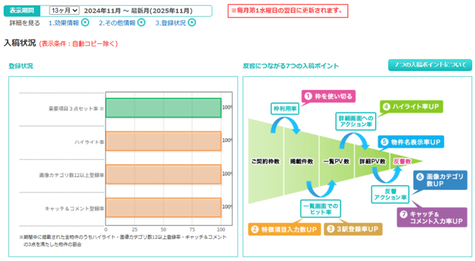 掲載物件全体における入稿状況をご確認いただけます