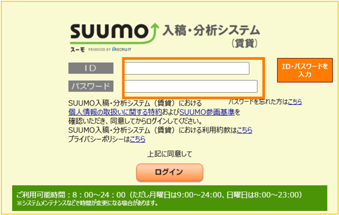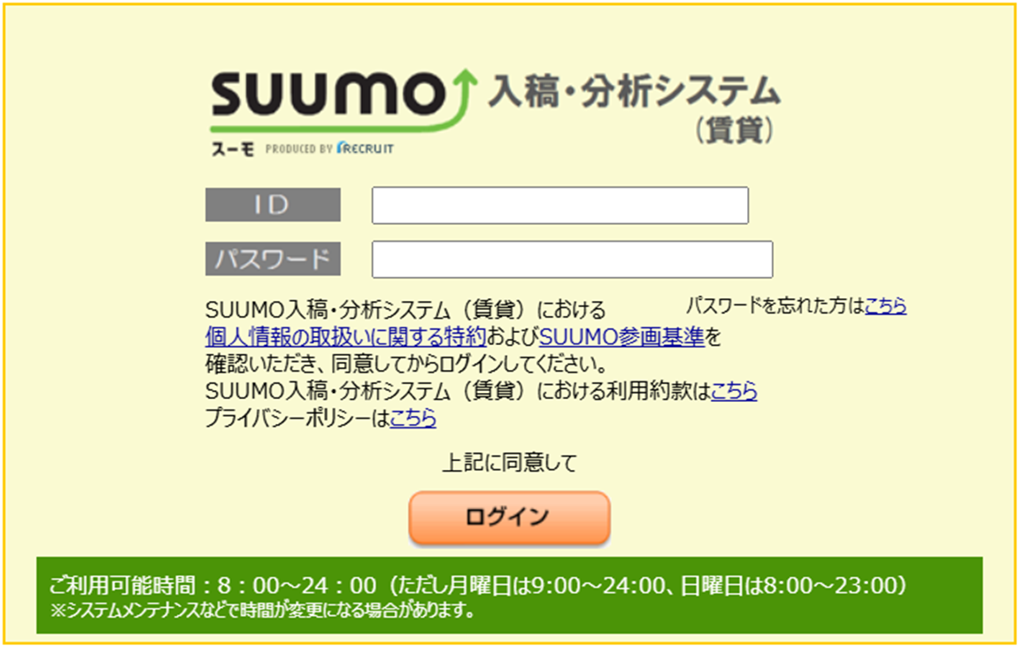 SUUMO入稿分析システムへのログイン