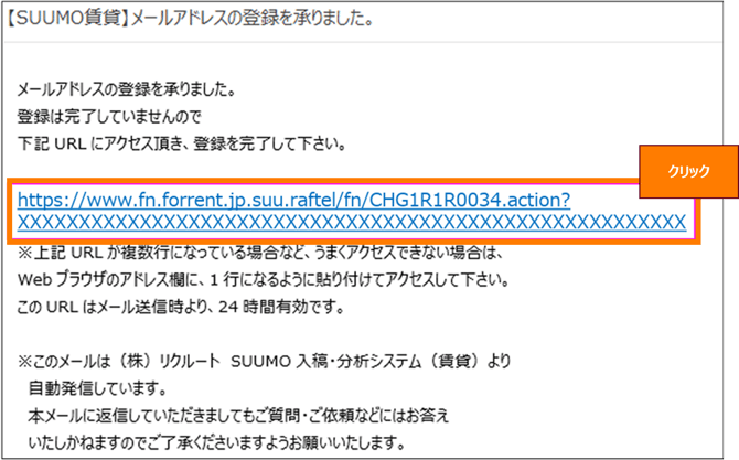 内容をご確認いただき、必ず24時間以内にメール内の認証用URLをクリックして登録を完了させてください。