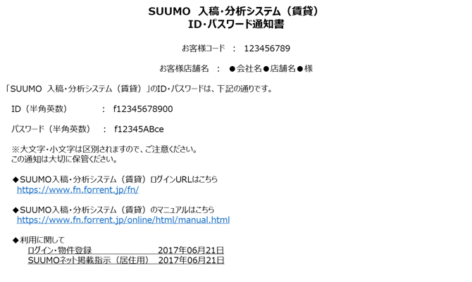 SUUMOへ初めてご参画されるお客様へは単価登録兼申込書に記載されていた住所宛てに郵送でお送りしております。